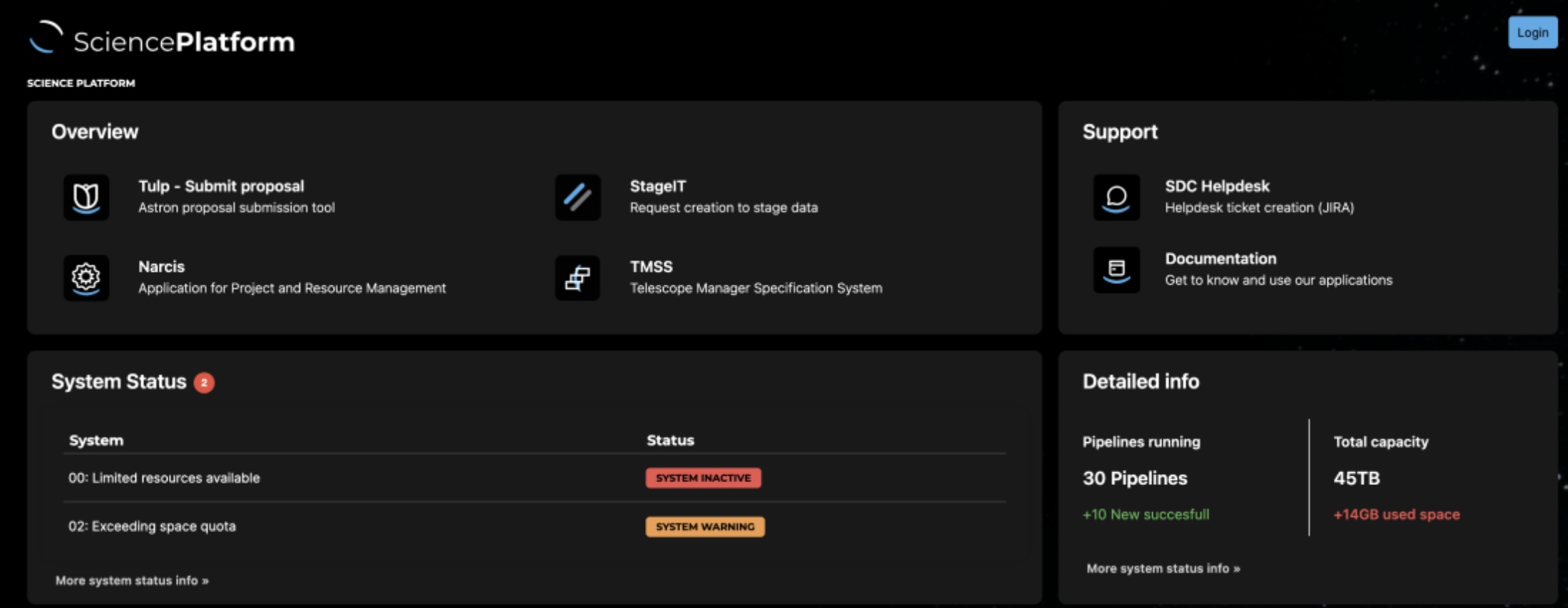 Finally, we have been planning for future improvements to the LOFAR data systems that we will be working on after the first version of LOFAR2.0 is ready. We're really excited about our vision for a “science platform”, which will be the main point of contact for all science user interactions with the LOFAR system, from submitting proposals to accessing data to running analyses — see the attached images for a preview of what we have in mind. We have also been preparing for much closer collaboration with SKA — both LOFAR and SKA are facing many of the same challenges, and both parts of the solutions. We think that by joining forces we will see some real breakthroughs over the next few years.